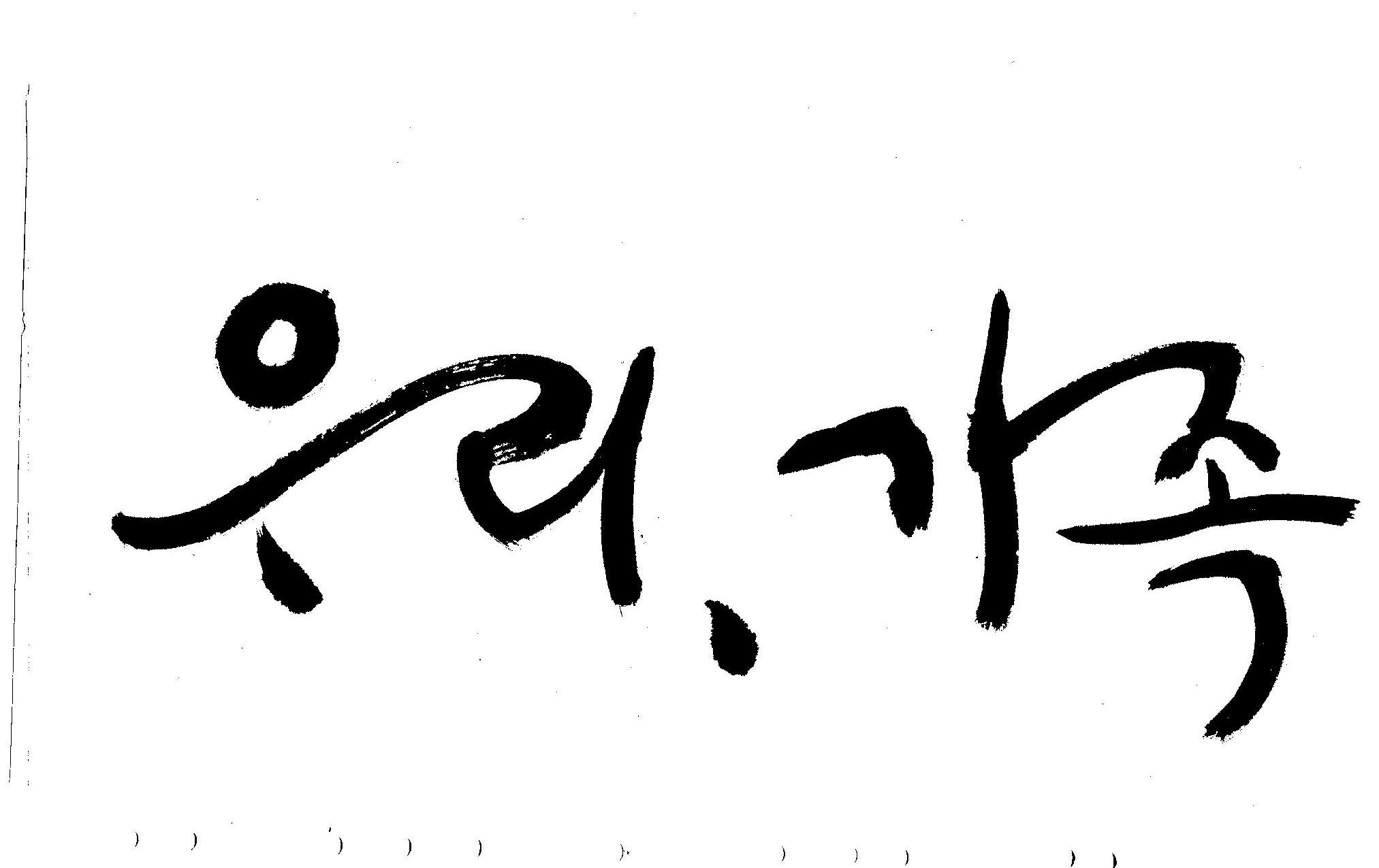 기축년 신년 으뜸말 휘호 김철호 일반 0 4779 2009.01.02 20:21 어떤 으뜸말이 올해엔 필요할까... 고민하다가.. 언제나 그랬듯이 어려울때에는 무엇보다도 우리라는 공동체의 가치관이 더 필요할것 같고 가족이라는 최소의 가치가 (여기서 최소라고 하는것은 가치를 말하는 것이 아니고 가장기본적인 단위를 말하는 것입니다.) 무엇보다도 앞서야 한다고 느꼈으므로 "우리"와 "가족"을 주제어로 정했습니다. 이것은 무조건 내 생각입니다. 다른분들은 다른 주제어가 있겠죠... 어쨌든지 ... 새해엔 행복하고 건강하세요..